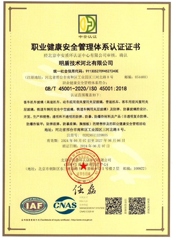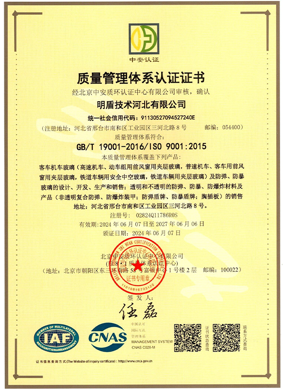 Mingdun Company sigue el concepto de producto de seguridad de "resistente a impactos, resistente a la penetración y ligero", y se centra en los dos principales campos de mercado: el transporte ferroviario y la prevención de la seguridad. Investiga y produce productos especiales de vidrio como ventanas delanteras, ventanas laterales, portaequipajes, pantallas de lámparas, sistemas de monitorización pantógrafo-catenaria y pantallas interiores para vehículos de alta velocidad, tren interurbano, metro, lev magnéfico y monorraíl. Vidrio antibalas, vidrio anti-choques y vidrio ignífugo para equipos militares y policiales, residencias de alto nivel, bancos y otros campos de seguridad. La empresa cuenta con una larga trayectoria de suministro y colaboración con los principales fabricantes de mainframes del Grupo CRRC, grandes fabricantes de apoyo de vías férreas, puertas y ventanas Schuco alemanas, puertas y ventanas Hansnooker alemanas, Senying Doors and Windows, Moser Doors and Windows, North Glass Group y otras compañías. Durante muchos años, la empresa ha sido el proveedor preferido de cristal antibalas e integración de sistemas antibalas para vehículos ferroviarios especiales de alta calidad. El rendimiento de sus productos antibalas cubre los requisitos de todos los grados de GB17840 nacional, UL752 americano y las normas europeas EN1063.